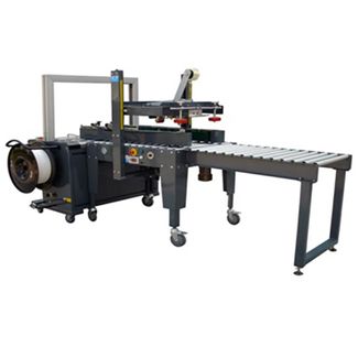 Эта линия подходит для коробок различного размера и может автоматически выполнять заклейку коробки сверху и снизу и обвязку коробки полипропиленовой лентой. Оператор вручную ставит коробку с продуктом на рольганг и продвигает ее на автомат для заклеивания после чего коробка с продуктом отправляется на автоматическую обвязку полипропиленовой лентой.