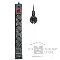 Buro Сетевой фильтр, 6 розеток, 1.8 метров, BU-SP1.8 USB 2A-B, черный коробка