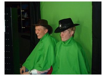 - Участники шоу программы выбирают видеоролик, усаживаются на указанные оператором места, накрыв тела специальными зелеными накидками.