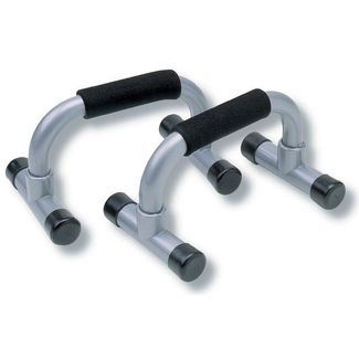 Упоры для отжиманий Тренажер для отжиманий помогает эффективно проработать мышцы рук, плечевого пояса, а также мышцы груди. Снижает риск возникновения травм кистевых, локтевых и плечевых суставов Данный снаряд позволяет выполнять спортсмену более глубокие отжимания, и сильнее растягивать мышцы груди. При использовании упоров для отжиманий - данное упражнение усложняется за счет увеличения амплитуды движения. Не рекомендуется использовать гантели из-за их неустойчивости и резкого травмирования, а пользоваться специальными упорами для отжима Материал - пластик, ручки с неопреном None