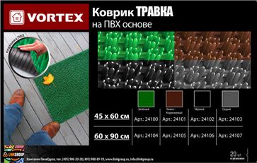- Коврик противоскользящий Vortex Травка 60х90 см серый 24107 по выгодной цене 502 р. руб.;
