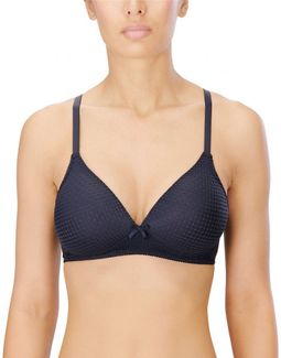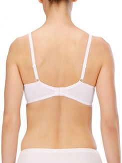 Бескаркасный бюстгальтер с бесшовными формованными чашками на тонком поролоне. Поверхность чашек декорирована слоем эластичного кружева в тон. U-образный вырез на спинке. Эластичные бретели регулируются сзади. Три ряда крючков для оптимальной подгонки бюстгальтера по объему. None