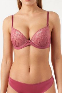 Бюстгальтер с эффектом пуш-ап с формованными чашками с гелем. Чашки бюстгальтера обтянуты эластичным кружевом, по низу чашки кружево слегка присборено. Стан выполнен из эластичного кружева. Гелевые подушки позволяют корректировать грудь и придать ей красивую округлую форму. Украшение: атласный бантик с камнем. None
