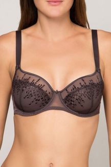 Бюстгальтер-балконет с мягкими чашками на каркасах. Вышитый узор фиксирован. Он располагается на одном и том же месте в каждой модели, тем самым создавая непрозрачный участок в центре чашки и прозрачную линию декольте. Нижняя часть чашек снабжена подкладкой из тюля, обеспечивающая отличную поддержку. Вырез декольте и бретели украшены великолепным атласом, придавая модели утонченность, лаконичность и актуальность. None