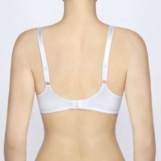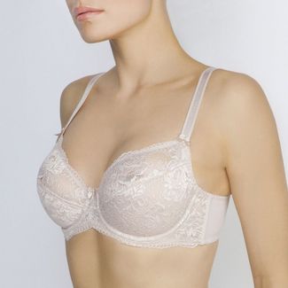 Бюстгальтер-балконет с мягкими кружевными чашками, на каркасах. Нижняя деталь чашки усилена не эластичным, прозрачным полотном. Боковая, внутренняя часть чашки , в области пришива бретели, усиливается не эластичной тканью в сгиб, без дополнительных швов для комфортности. Именно этот элемент позволяет не растягиваться кружеву. Богатство кружева можно оценить благодаря фестону по линии декольте и под грудью. Вертикальные косточки на боковых панелях, из однослойной микрофибры, не дают ткани скрутиться на больших размерах. None