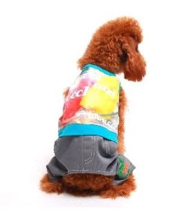 Стильный костюм для собак. На майке большой принт. Штанишки выполнены из тонкой джинсы с имитацией кармашек, а на одной из штанин вышивка в виде пальмочки. Костюм слитный, одевается через голову. Майка-бокс, на животике резиночка. Материал: 65% хлопок, 35% полиэстер. None