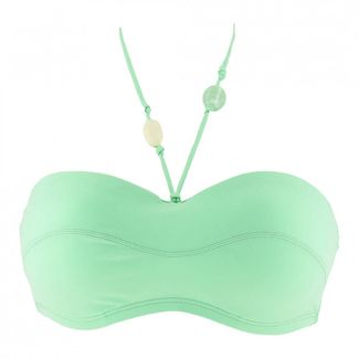 Верх раздельного купальника без бретелей, с мягкими чашками, на каркасах. Эта модель бандо является неотъемлемой составляющей коллекции. Завязки вокруг шеи декорированы морскими камушками. None
