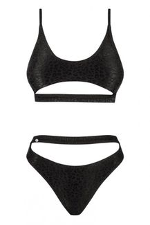 Шикарный купальник в эффектном спортивном стиле. Подчеркивает все пленительные изгибы тела. Лиф – с регулируемыми бретелями и дополнительным ремешком делает образ ультраженственным. Трусики-плавки с высокими вырезами на бедрах тоже имеют аналогичный модный ремешок. Визуально удлиняют ноги. Купальник сшит из эластичного мягкого материала. Комфортный и невероятно стильный. Необычный и запоминающийся дизайн, который превращает спортивное бикини в сексуальный пляжный наряд. В комплекте: лиф, трусики. None