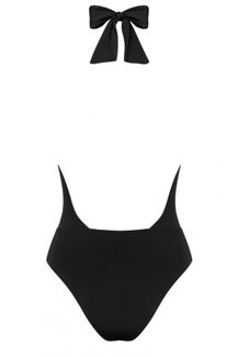 Слитный купальник может быть гораздо сексуальнее раздельного. Если речь идет о такой модели как Acantila. Полностью обнаженная спина, трусики с открытыми ягодицами, переплетение широких лент через грудь с завязкой на шее. Фантазия уже рисует, как рука развязывает этот атласный бант, предоставляя взору еще больше прелестей. Купальник подчеркивает все достоинства фигуры: линия живота закрыта плотной тканью, ленты на груди формируют красивую ложбинку, высокие вырезы по бедрам визуально удлиняют ноги. None
