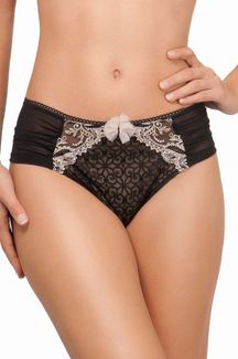 Благодаря тюлю со складками на бедрах, эта модель удобна в носке и незаметна под одеждой. Великопеная вышивка на передней вставке, бантик из тюля и отделка пико по линии талии делают это изделие необычайно соблазнительным. None
