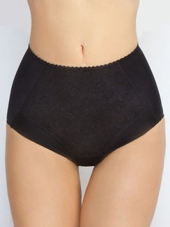 Трусы-макси с высокой линией талии. Выполнены из эластичной микрофибры, в сочетании с кружевной фронтальной вставкой, ламинированной хлопком. Скрытый пришив эластичной отделочной ленты по линиям выреза бедер на фронтальной детали, придаст комфортные ощущения при носке. Лаконичные отделочные ленты (без дополнительных фестонов), тонкие, малозаметные под одеждой. Ластовица: 100% хлопок. None