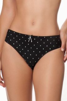 Трусы с высоким вырезом по линии бедра. Модель выполнена из эластичной ткани с отливом и очень удобна в носке, А ее винтажный принт в горошек напоминает стиль Pin-Up None