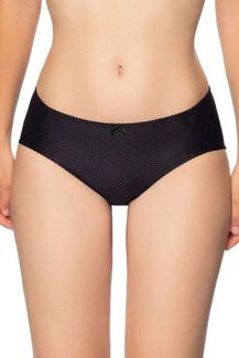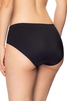 Мини-слипы со средней посадкой. Фронтальная панель выполнена из мерцающего жаккарда, задняя - из гладкой микрофибры. Края изделия обработаны тонкой и плоской резинкой с фестончатым краем. Ластовица: 100% хлопок. None