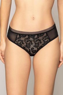 Трусы с высоким вырезом по линии бедра. Вставка из роскошной вышивки на фронтальной панели, в сочетании с полупрозрачным тюлем. Вышитые завитки образуют прекрасный орнамент в виде широких и легких арабесок на тонком тюле наивысшего качества. None
