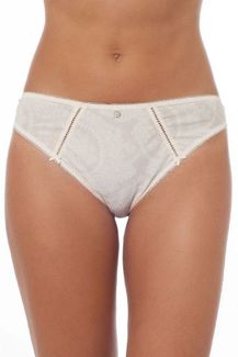 Трусы - стринги. Края модели обработаны плоским швом для максимального комфорта. Украшением служит крошечная пуговка из натурального перламутра спереди и декоративная вставка из кружева «Шантильи» на задней части. Ластовица из хлопка. None