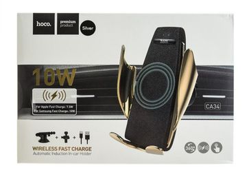 Автодержатель универсальный Hoco CA34 10W в воздуховод, на торпеду +беспроводная зарядка, серебро