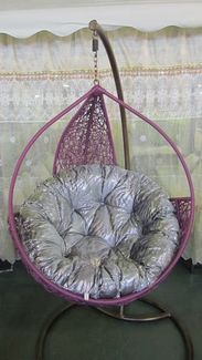 Удобное подвесное кресло из искусственного ротанга фиолетового цвета понравится взрослым и детям. Такие плетеные качели на стойке прекрасно впишутся в интерьер любого дома или квартиры. Подвесные кресла легко моются и не требуют особого ухода. Комплектуется подушкой. Тип плетеного материала: Искусственный ротанг Основной обивочный материал: ткань Максимально допустимая нагрузка: 120 (кг) Цвет мебели: фиолетовый Габаритные размеры кресла ШхВхГ, мм: 1050х1200х750 Стойка разборная 1050х2000