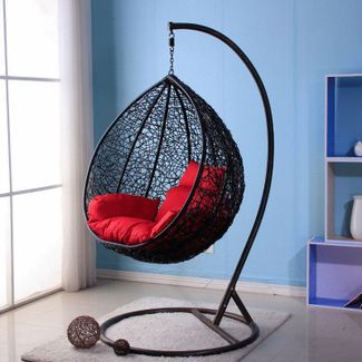 Уютное и небольшое подвесное кресло среднего размера (комфортно при росте до 170 см) из искусственного ротанга черного цвета с яркой мягкой подушкой может стать основой вашего будущего интерьера.