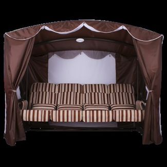 Садовые качели Монарх шоколад - комфортная и одновременно стильная модель, которая станет прекрасным дополнением дачного уголка. Упакована в одну коробку. Москитная сетка и подвесной фонарик идут в комплекте. Материал: Каркас- сварная решетка Обивка - ткань с водоотталкивающей пропиткой Диван - поролон Подушки - холлофайбер (4 шт) Преимущества: