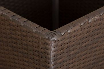 Ваза из искусственного ротанга "Липари" выполнена из высокопрочного материала устойчивого к влаге и земле, не скапливает мошек и дает растению дышать. Алюминиевый каркас, искусственный ротанг, плетение плоское.