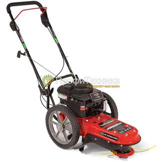 Двигатель Briggs&Stratton, мощность двигателя 6.5 л.с., ширина скашивания 56 см, высота скашивания 38-76 мм, диаметр лески 4 мм, колеса диаметром 35.5 см, вес 31 кг. None