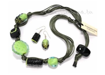 - Комплект Con Fusione зелёный: ожерелье+серьги по выгодной цене 7 100 р. руб.;