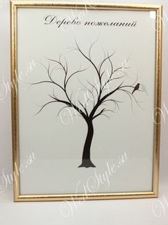 Дерево пожеланий DRP033 Элегантное дерево для свадебных пожеланий украсит уютное гнездышко молодой семьи. Оно будет хранить короткие, но очень ценные свадебные пожеланий, а также отпечатки пальцев всех присутствующих на свадебном банкете. Креативное дерево в рамочке станет настоящей гордостью молодоженов. Размеры: 30 х 40 см В комплект входит: 1. Рамка со стеклом (можно выбрать рамку на выбор). 2. Картина дерева пожеланий на плотном картоне. 3. Две штамп-подушечки (цвета в ассортименте, можно выбрать цвета) для отпечатков пальцев. 4. Ручка для подписей гостей. None