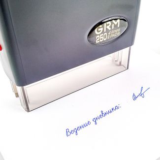 - Автоматический штамп личная подпись для дневника, ФАКСИМИЛЕ для школы GRM 250 2 Pads (76*17) мм, c двойной подушкой по выгодной цене 1 350 р. руб.;