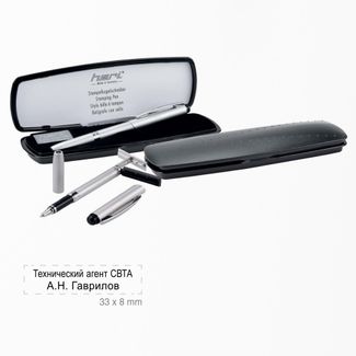 Гелевая ручка MASTER CLASSIC хромированная Подарочный комплект из гелевой ручки серебристого цвета со штемпелем и белого футляра. Оригинальный дизайн, встроенная штемпельная подушка чёрного цвета. Для факсимиле, адреса организации. размер, мм: 38x8количество строк: 3производитель: HERI, Германияприменение: Для факсимиле и координат, штамп -визитка В стоимость ручки входит изготовление штампа. Укажите текст в поле "Текст штампа". None Можно купить без предварительного заказа. Возможен самовывоз. Есть доставка.