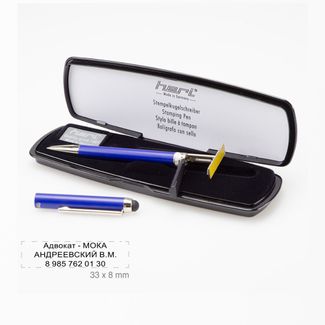 HERI - V3303. Ручка со стилусом и встроенным штампом Heri V3303, ручка-штамп со стилусом для управления смартфоном или планшетом.Оригинальный дизайн, встроенная штемпельная подушка чёрного цвета. размер, мм: 38x8количество строк: 3цвет корпуса: синийпроизводитель: HERI, Германияприменение: Для факсимиле и координат, штамп-визитка В стоимость ручки входит изготовление штампа. Укажите текст в поле "Текст штампа". None Можно купить без предварительного заказа. Возможен самовывоз. Есть доставка.