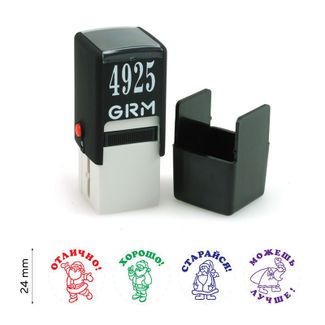 "Дед Мороз" - Комплект автоматических печатей GRM 4925 Office, для школы. Комплект оценочных печатей для школы с тематическими картинками - "Дед Мороз". В комплекте четыре печати, д. 24 мм.: