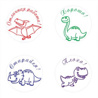 - Комплект автоматических печатей для школы «Динозаврики», 4 печати, д.24 мм, Тип-32 по выгодной цене 2 500 р. руб.;
