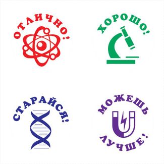 "Физика" - Комплект автоматических печатей для школы. Комплект оценочных печатей для школы с тематическим изображением - "Физика". В комплекте четыре печати, д. 24 мм.: "Отлично" - красный оттиск, "Хорошо" - зелёный оттиск, "Старайся" - синий оттиск, "Можешь лучше" - фиолетовый оттиск. Пример оттисков: Необходима предоплата. Visa/Mastercard, б/н расчет Можно купить без предварительного заказа. Возможен самовывоз. Есть доставка.