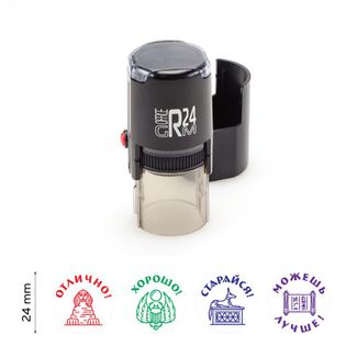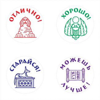 "История" - Комплект автоматических печатей для школы. Комплект оценочных печатей для школы с тематическим изображением - "История". В комплекте четыре печати, д. 24 мм.: "Отлично" - красный оттиск, "Хорошо" - зелёный оттиск, "Старайся" - синий оттиск, "Можешь лучше" - фиолетовый оттиск. Пример оттисков: Необходима предоплата. Visa/Mastercard, б/н расчет Можно купить без предварительного заказа. Возможен самовывоз. Есть доставка.
