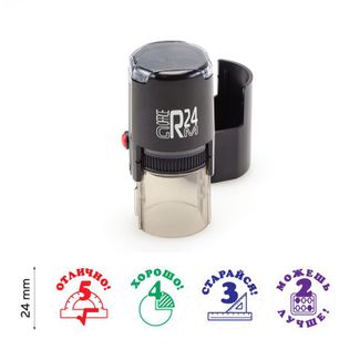 "Математика" - Комплект автоматических печатей для школы. Комплект оценочных печатей для школы с тематическим изображением - "Математика". В комплекте четыре печати, д. 24 мм.: "Отлично" - красный оттиск, "Хорошо" - зелёный оттиск, "Старайся" - синий оттиск, "Можешь лучше" - фиолетовый оттиск. Пример оттисков: Необходима предоплата. Visa/Mastercard, б/н расчет Можно купить без предварительного заказа. Возможен самовывоз. Есть доставка.