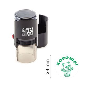 Печать для школы - «Хорошо», GRM R24 Office д. 24 мм. зелёная подушка, Тип-8 "Панды" Автоматическая печать словесной оценки GRM R24 Office для учителей. Используется для краткой характеристики результатов учебного труда школьников.
