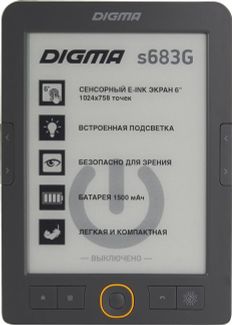 Электронная книга Digma S683G Grey (6", mono, подсветка, 1024x758, 4Gb, FB2 PDF DJVU RTF CHM EPUB DOC JPG BMP, microSDHC, USB2.0)