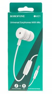 - Наушники с микрофоном Borofone BM31, белая по выгодной цене 150 р. руб.;