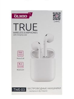 - Наушники внутриканальные беспроводные Olmio TWE-03 с магнитным зарядным футляром, Bluetooth 5.0, белые по выгодной цене 1 600 р. руб.;