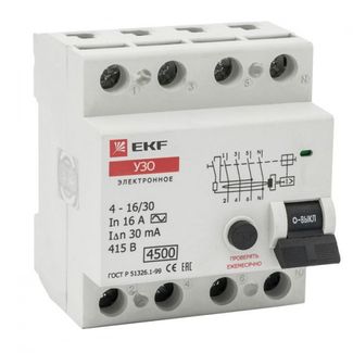 - Устройство защитного отключения УЗО 4P 25А 30мА (электронное) | код. elcb-4-25-30e | EKF по выгодной цене 324 р. руб.;