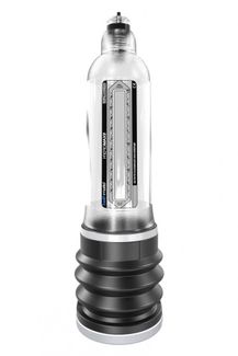 Эту модель приобретают мужчины, которым уже мала стандартная модель HydroMAX7. Главное отличие HydroMAX от предыдущей серии - повышенная мощность гидропомпы (на 35%), благодаря чему ускорился рост полового члена, а так же увеличились итоговые результаты за тот же промежуток времени. <br><br> Bathmate HydroMAX9 с прозрачной колбой – старший брат гидронасоса HydroMAX7, а потому более длинный. Предназначенный для фаллостимуляции в условиях вакуума, он позволит вам совмещать тренировки по увеличению члена с обычными водными процедурами. <br><br> Чтобы начать пользоваться прибором, следует закрыть клапан затвора и наполнить колбу тёплой водой. После погружения члена до упора необходимо открыть клапан и совершить несколько возвратно-поступательных движений рукой – как при мастурбации. <br><br> Излишки воды вытекут через затвор, внутри же создадутся идеальные условия для наполнения пениса кровью. Рекомендуемое время тренировки – 15-20 минут, периодичность – минимум 3 раза в неделю. Начальные размеры пениса (в эрекции) до покупки помпы:<br> <li>Длина пениса - до 21 см.<br> <li>Диаметр пениса - до 5,6 см.<br><br> Параметры гидропомпы:<br> <li>Длина с сильфон-насосом (общая длина) - 29 см.<br> <li>Длина без сильфон-насоса (длина колбы) - 24,5 см.<br> <li>Внутренний диаметр колбы - 6,3 см.<br> <li>Внутренний диаметр сильфон-насоса - 6,7 см.<br> <li>Мощность - 0,55 бар.<br> None