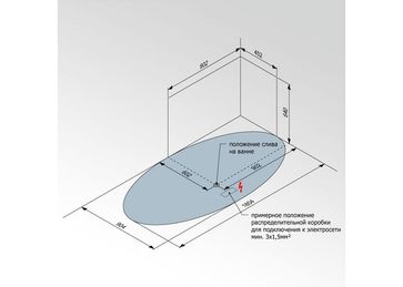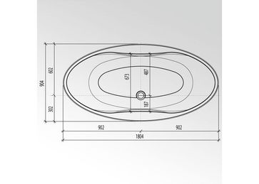 Акриловая свободностоящая ванна ГАНГ имеет размеры 180х90 см.