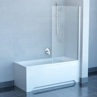 Шторка состоит из вертикального установочного профиля и одной неподвижной части, которая не поворачивается. Минимум профилей и гладкое прозрачное безопасное стекло толщиной 6 мм облегчают уход. Шторка устанавливается на прямоугольные ванны (Praktik Lux, Praktik N, Classic, Sonata, Campanula II, Vanda II и Lilia) или на какую-либо классическую прямоугольную ванну с ровным передним бортом. Стандартная высота 1400 мм.