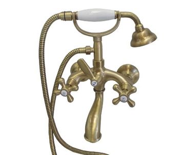 Цвет: бронза Управление:двухвентильный Механизм:керамический картридж Стилистика дизайна:ретро Материал:латунь Монтаж:на стену Отверстия для монтажа:на 2 отверстия Вращение излива:фиксированный В комплекте:аэратор / душевая лейка / душевой шланг / настенный держатель Стандарт подводки:1/2 Длина излива (см):17 None