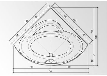 Акриловая угловая ванна АРНО имеет размеры 140х140 см.