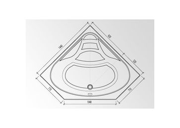 Акриловая угловая ванна МИССУРИ имет размеры 145х145 см.