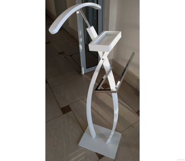 Напольная костюмная вешалка изготовлена из дерева окрашенного в белый цвет.