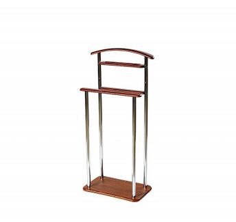 Наличие двух планок для брюк и полочки для аксессуаров. Выполнена из материала МДФ 16 мм в сочетании с хромированной трубой. Поставляется в разобранном виде, упакованная в гофрокартон. В комплект входит вся необходимая фурнитура и удобная инструкция для сборки. Ширина, мм: 500 Глубина, мм: 295 Высота, мм: 1050 Материал: металл, МДФ Стиль: Современный