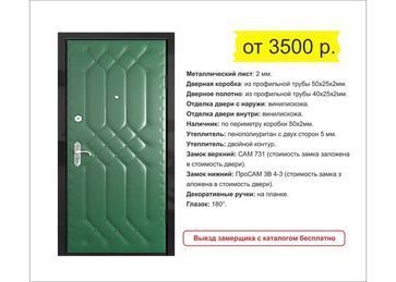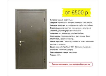 - Металлические двери на заказ по выгодной цене 3 500 р. руб.;
