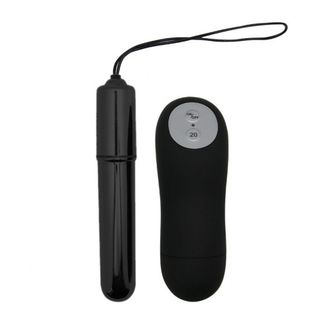 Черная гладкая вибропуля с пультом ДУ - 10,2 см. (238454)